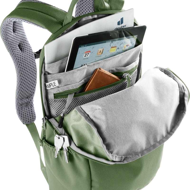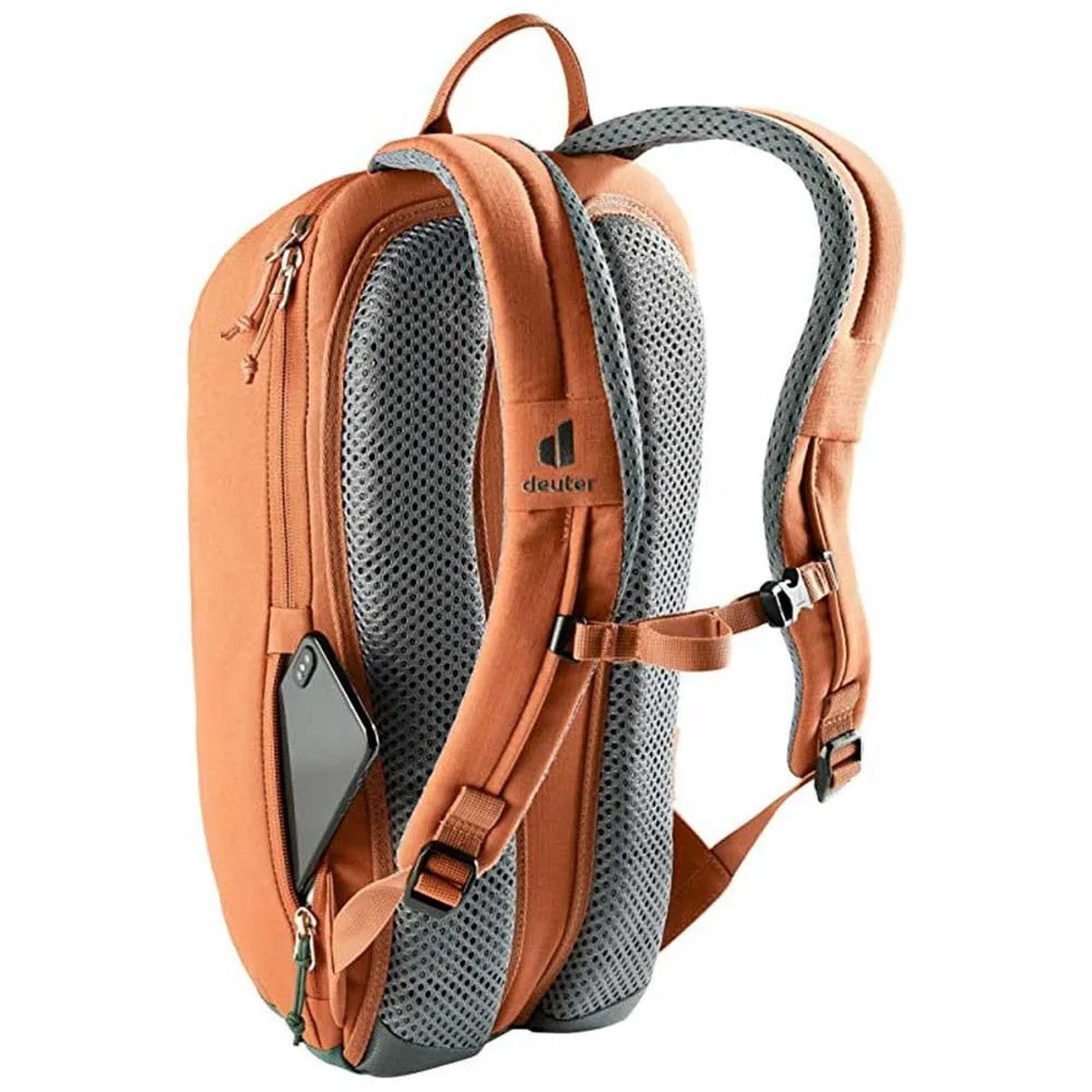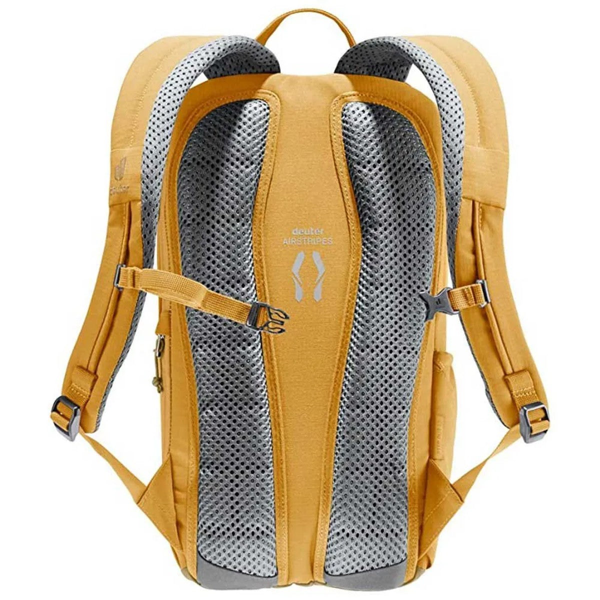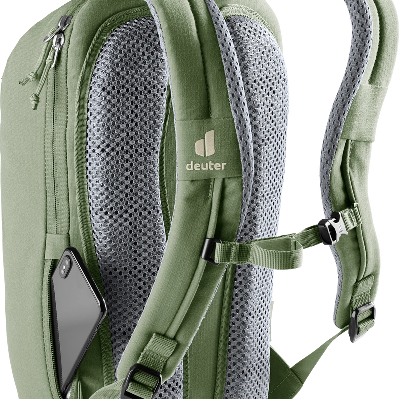 La mochila Stepout 12 destaca por su comodidad y ventilación gracias a las correas para los hombros perforadas y ergonómicas, junto con el sistema de espalda Airstripes de Deuter.