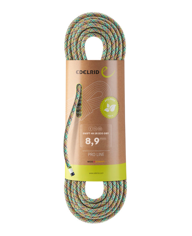 La SWIFT 48 2R ECO DRY es una cuerda con una huella ecológica reducida. 2R ("reutilización") representa la reutilización de hilos sobrantes de alta calidad de nuestros procesos de producción internos. La cuerda tiene las mismas propiedades y valores de resistencia que el SWIFT 48 ECO DRY y está certificada como cuerda simple, media y gemela. Con un diámetro de 8,9 mm, es una de las cuerdas individuales más finas del mercado. Realizado en una máquina trenzadora con 48 bobinas, tiene una estructura de funda particularmente fina y al mismo tiempo ofrece una excelente resistencia a la abrasión.